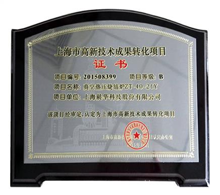 • 上海市高新技术成果转化项目证书